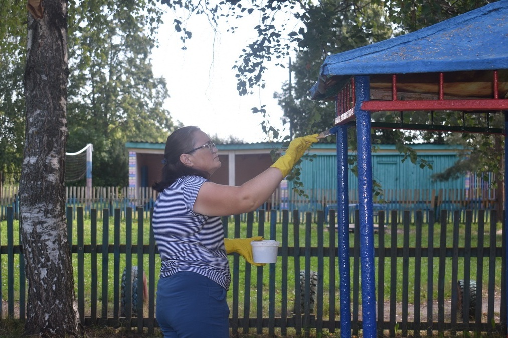 6 августа сотрудники детского сада провели субботник на игровых площадках.