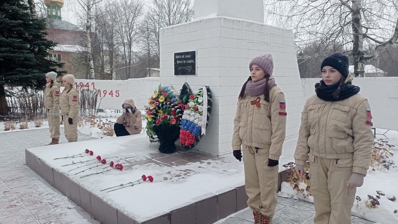 У памятного места юнармейцы Чучковской школы выставили почетный караул.