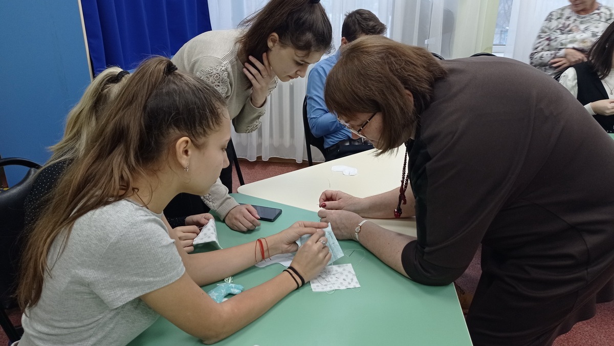 21 декабря в детской районной библиотеке чучковским девятиклассникам местная рукодельница Ольга Сафронова рассказала о разных способах работы с тканью.